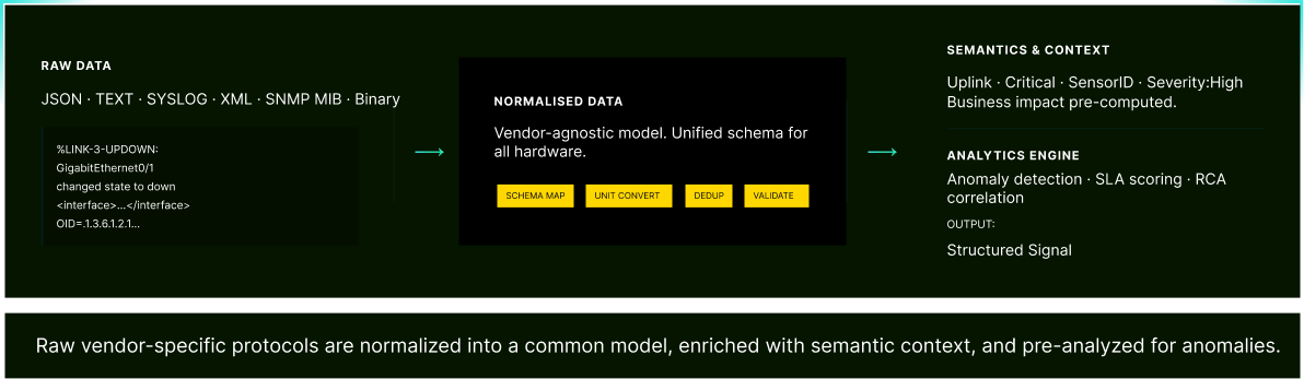Core Principle: Intelligence is an emergent property of structured data. Without the intermediary layers of normalization and enrichment, an AI sees only noise.